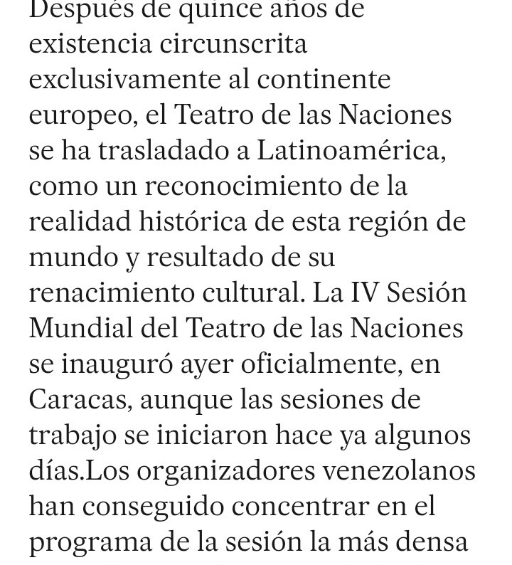 Comenzó en Caracas el IV Festival del Teatro de las Naciones/ Ángel Luis de la Calle, El País, 5 de julio de 1978