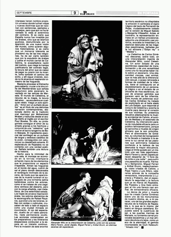 Danza de amor y muerte "La Celestina" de Rajatabla, por Moisés Pérez Coterillo, El Público, Italia, septiembre 1988